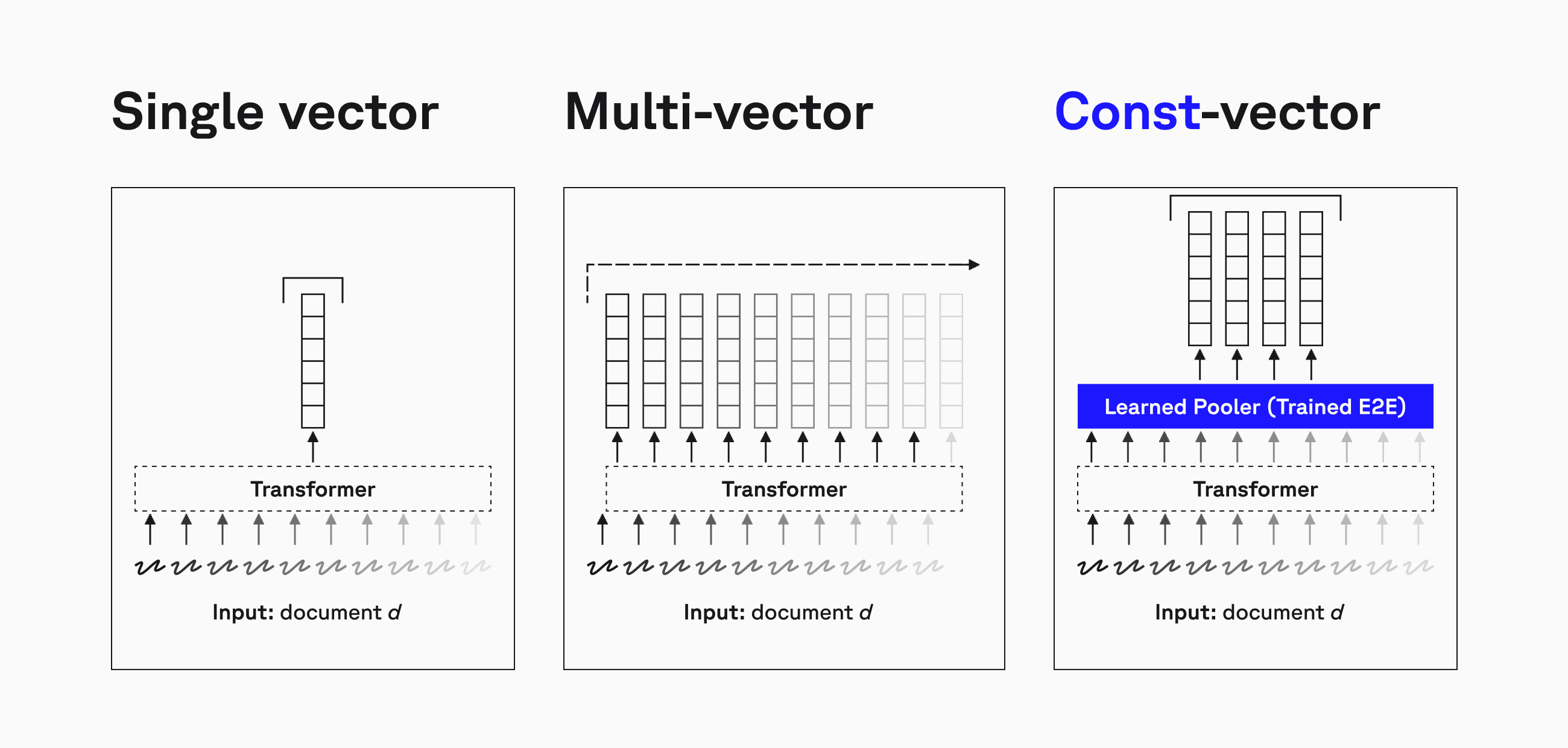ConstBERT takes a different approach. Instead of storing a separate vector for each token, it learns a fixed-size representation for each document, making multi-vector retrieval more practical, cache-friendly, and easier to integrate into real-world search pipelines.