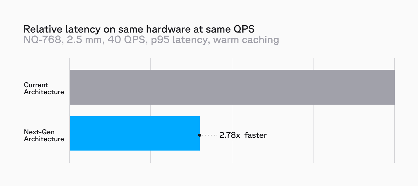 This iteration of our architecture represents a major step towards our commitment to deliver accurate, performant, and cost-effective retrieval for any scaled workload in production. But we're just getting started. On the immediate horizon, our next generation architecture enables us to: