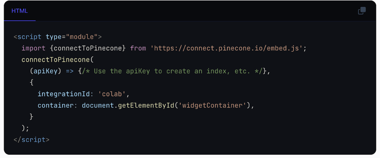 3-click integration with Pinecone inside partner’s product