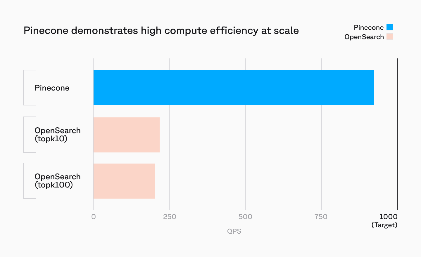 Achieving similar scale and performance as Pinecone serverless would require OpenSearch clusters scaled 10x to 100x. Pinecone handles this natively at scales from thousands to billions of vectors.