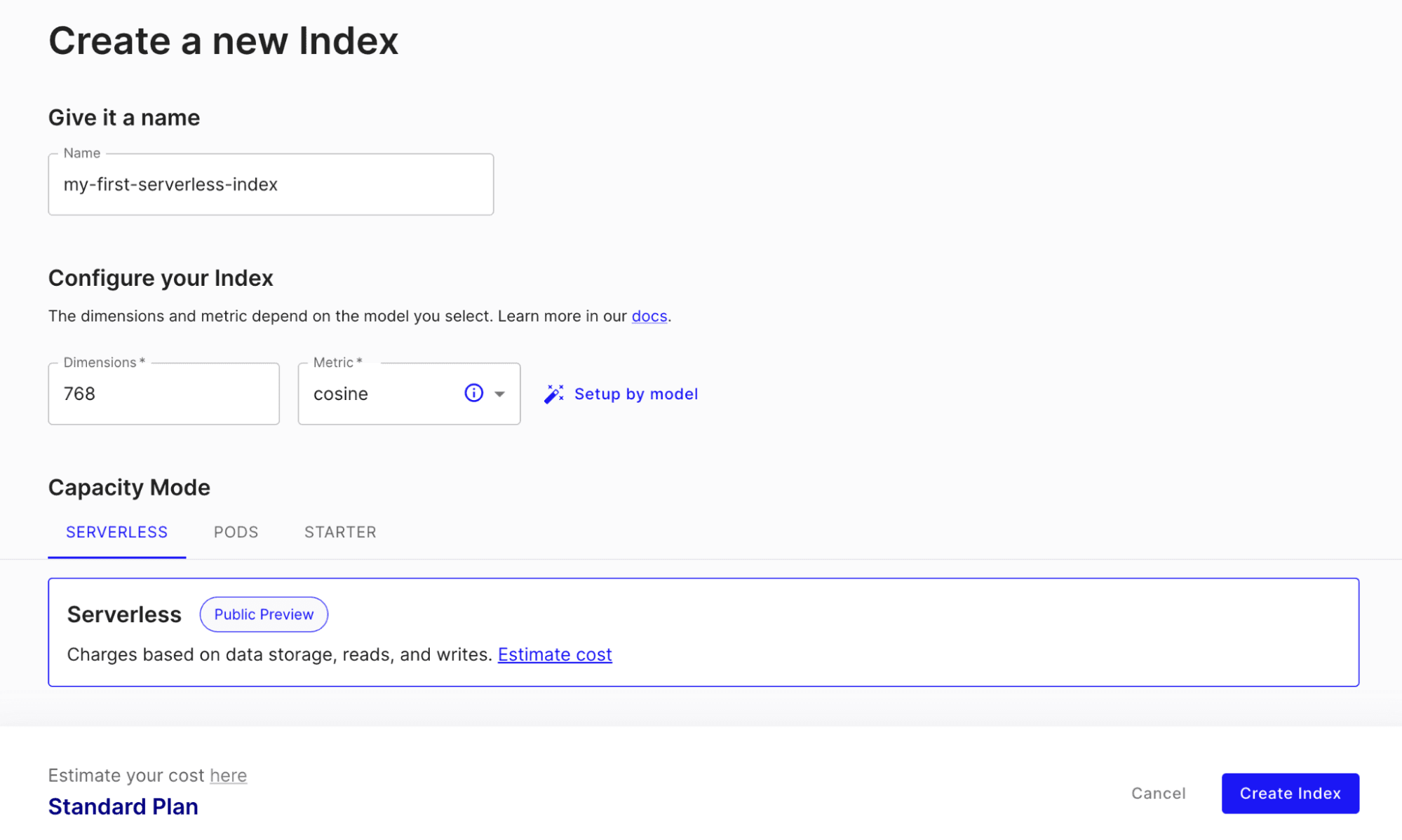 - A migration mechanism to help you move data from pod-based indexes to serverless indexes is in development.