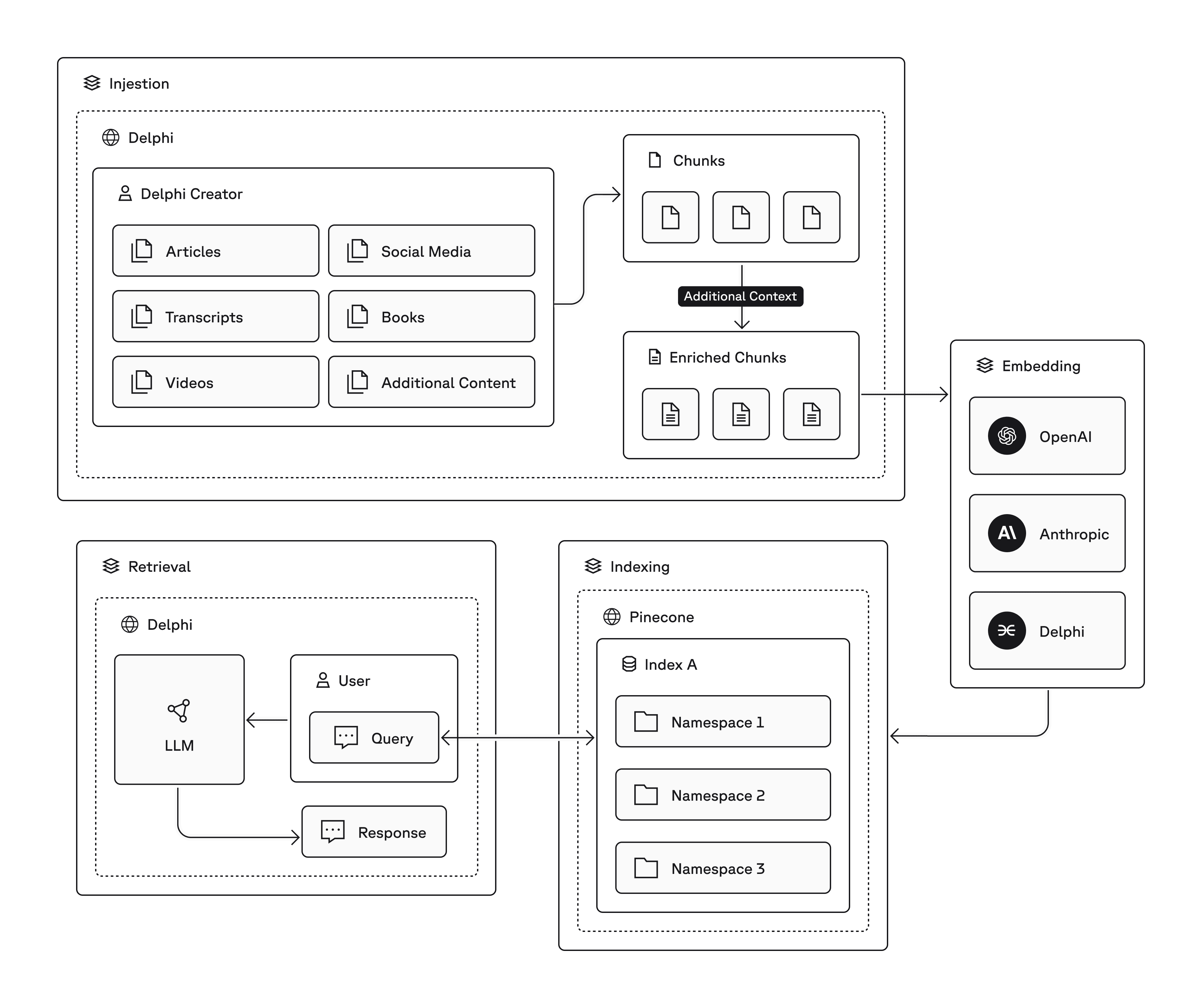 Pinecone now sits at the core of Delphi’s retrieval-augmented generation (RAG) pipeline: