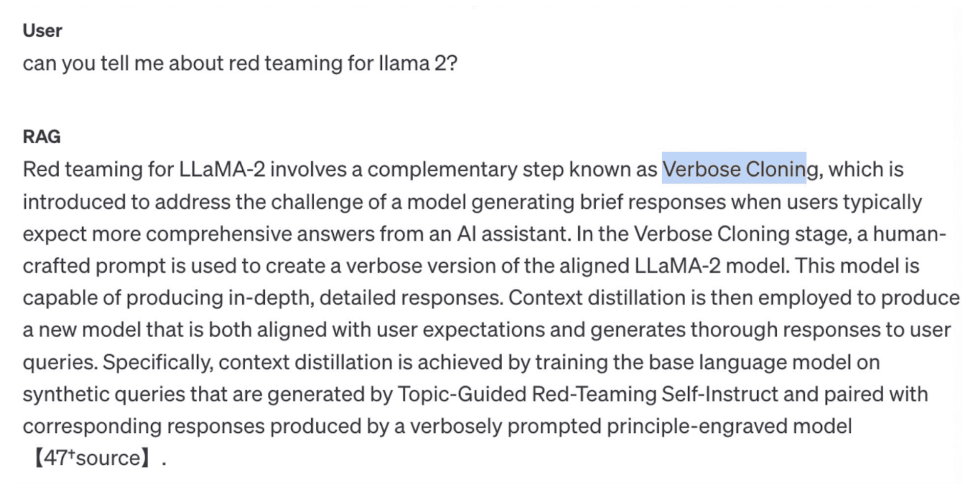 This is a compelling answer about Verbose Cloning — a term that does not appear in the Llama 2 paper and instead seems to come from another paper unrelated to Llama 2 [1].