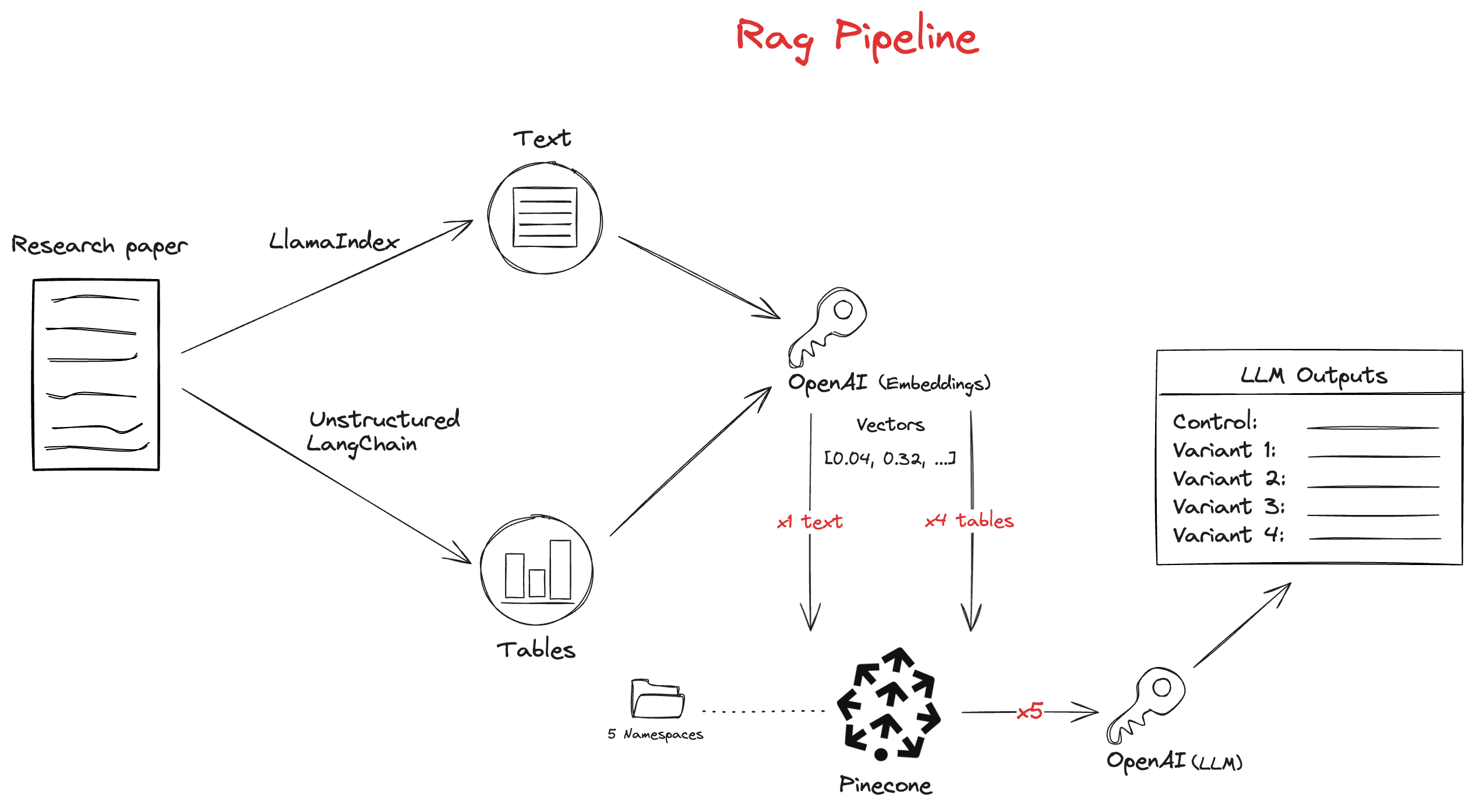 For this experiment, you will use Unstructured and LangChain to extract tables from a PDF. You will then use LlamaIndex and Pinecone to extract the remaining, non-table PDF contents; vectorize and store all the extracted data; and finally query the vectors within a RAG application.